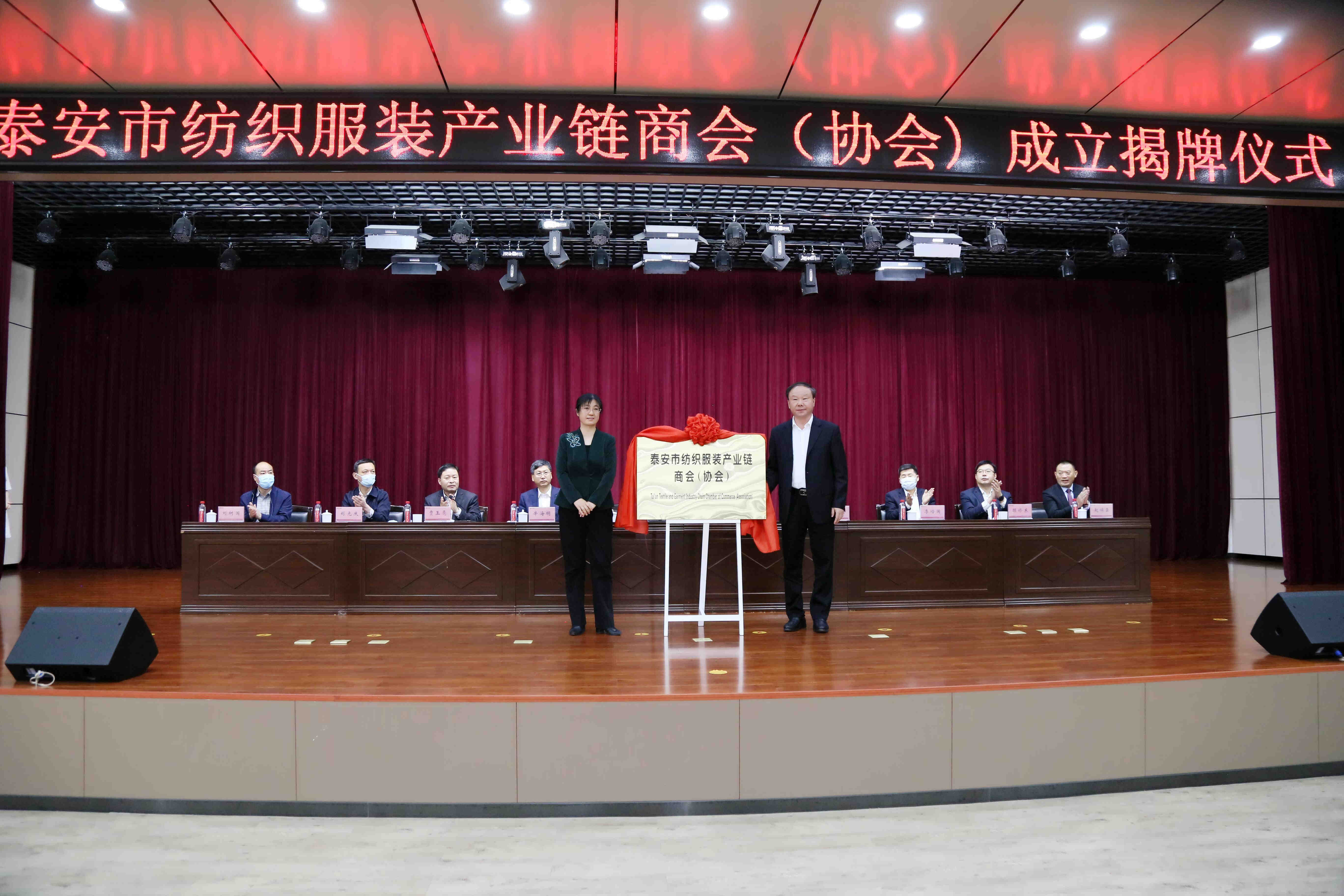市委常委、統(tǒng)戰(zhàn)部部長(zhǎng),市紡織服裝產(chǎn)業(yè)鏈鏈長(zhǎng)成麗同志,泰安市新型工業(yè)化強(qiáng)市建設(shè)推進(jìn)委副主任、黨委書(shū)記,市一級(jí)巡視員宋洪銀同志為商會(huì)(協(xié)會(huì))揭牌。